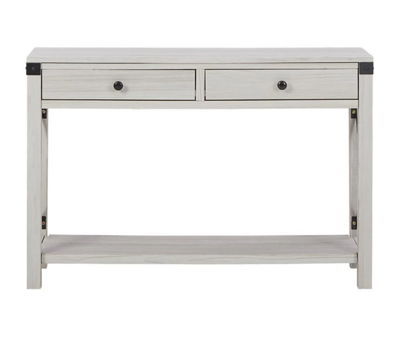 If you’re going for a simply striking addition to your space, this console table really makes a statement, creating an openly elegant place to showcase your style. With its replicated vintage barn wood effect in a subtly whitewashed color tone, this piece is decidedly understated yet rich with character. Metal crossbuck accents give it just enough flair.