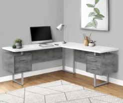 Faux Concrete & White 3-Drawer L-Shaped Corner Desk