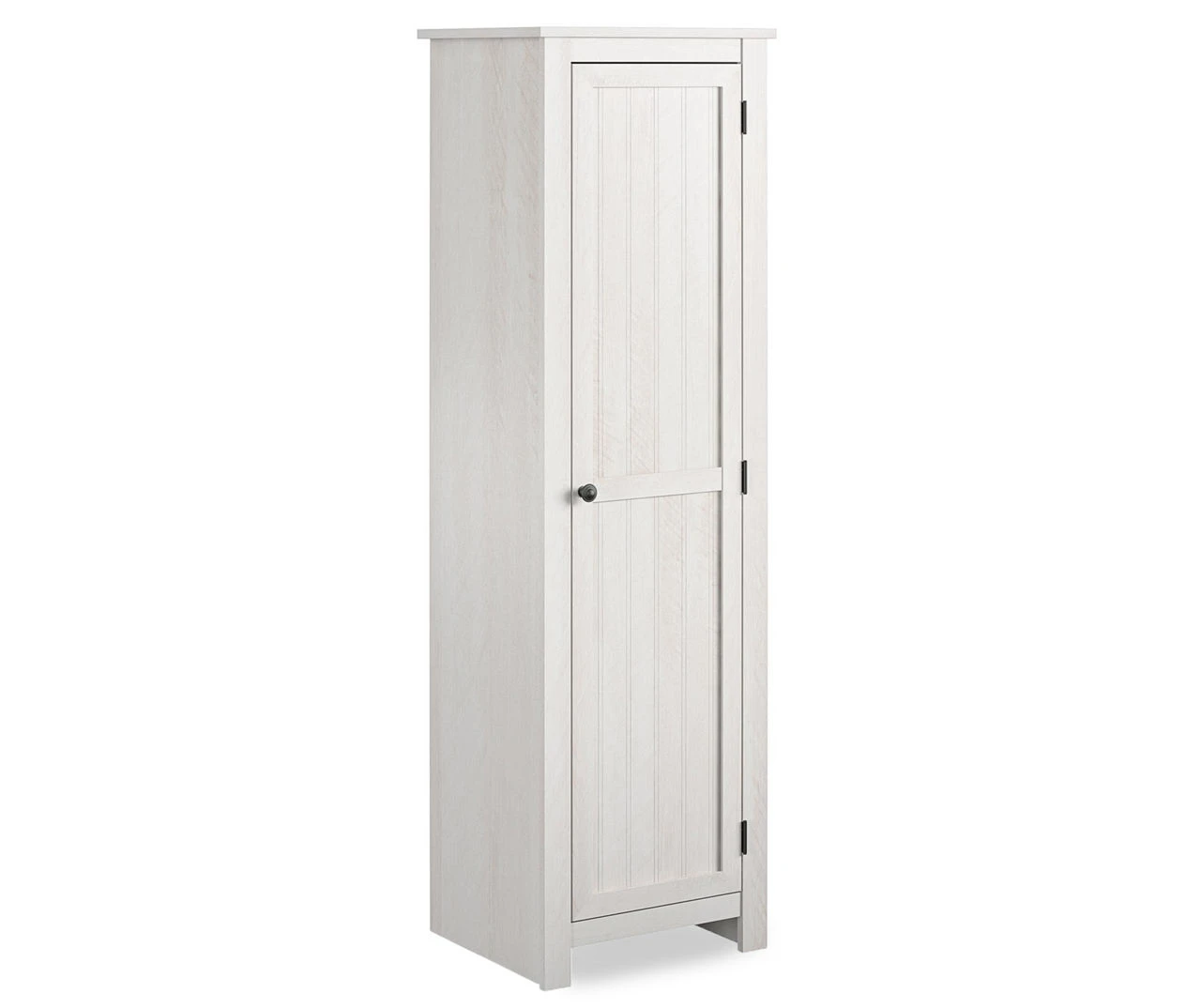Store and organized anything from canned goods to small appliances in modern farmhouse design using the Ameriwood Lincoln single door kitchen pantry. This beautiful storage solution features an off-white woodgrain finish paired with a beaded door insert to bring a rustic touch to your kitchen. Opening the door reveals four interior shelves with adjustable options for all your culinary and houseware needs. This versatile piece can also be used in any room of your home to add valuable storage where you need it most.