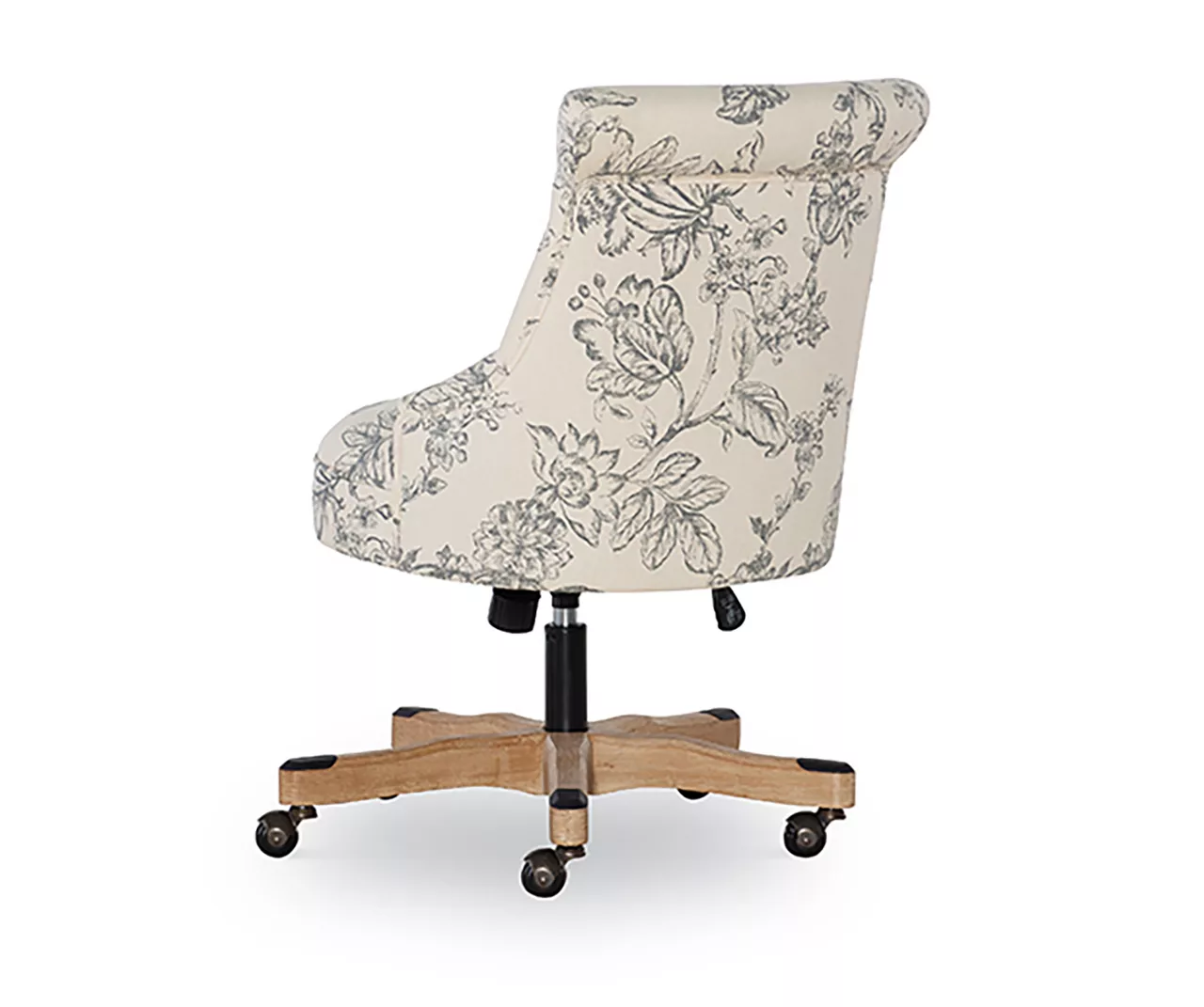 Give your office a boost of color, comfort and style with this chic office chair. Combining white and gray floral patterned upholstery with traditional tufting, this chair brings a timeless beauty to any space. With its adjustable height and durable metal casters, this chair also adds versatility and mobility to your workday.