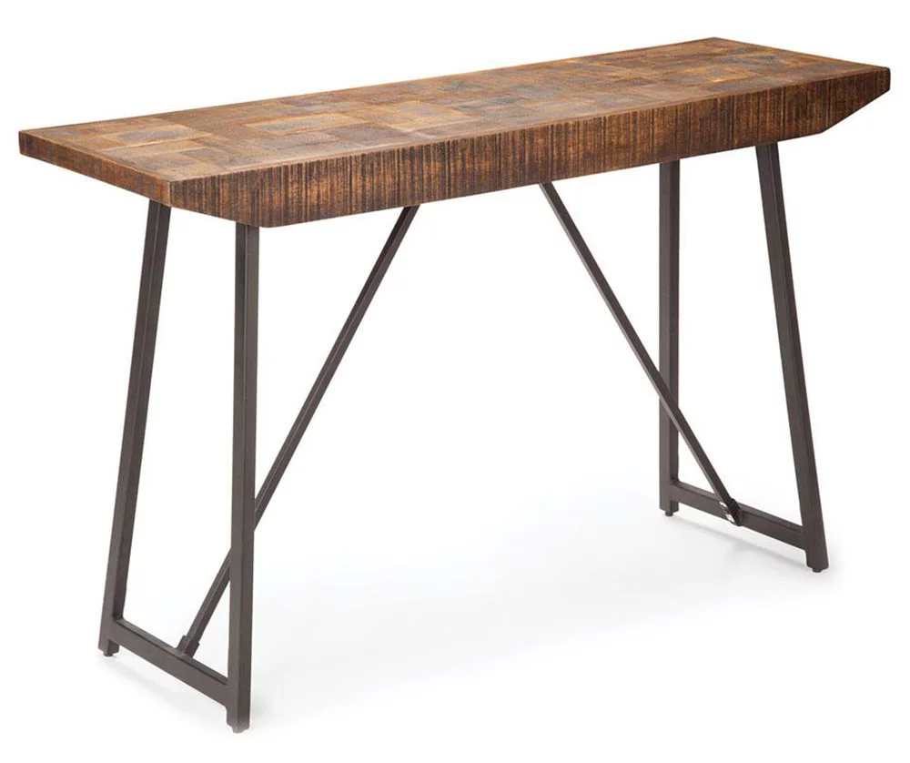 Mango wood in a signature parquet pattern gives the Walden console table a distinctive look. Paired with the iron base, it’s sure to give any living area its own unique style.